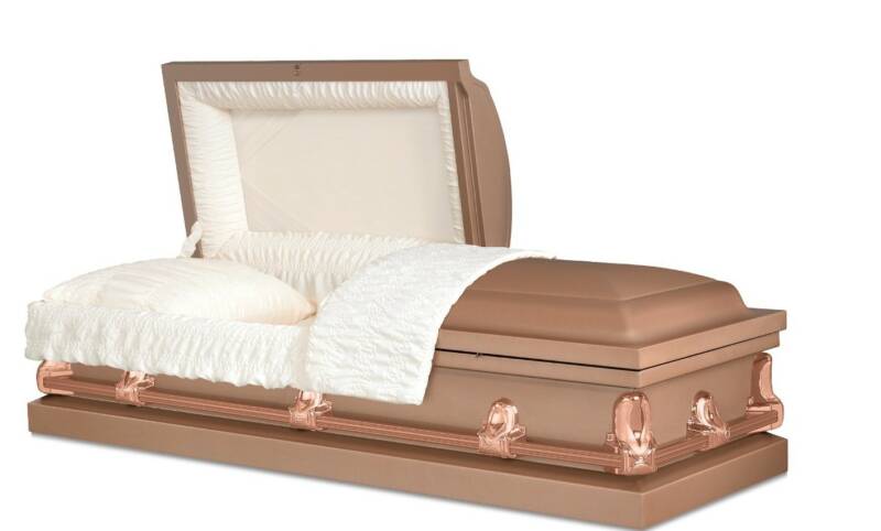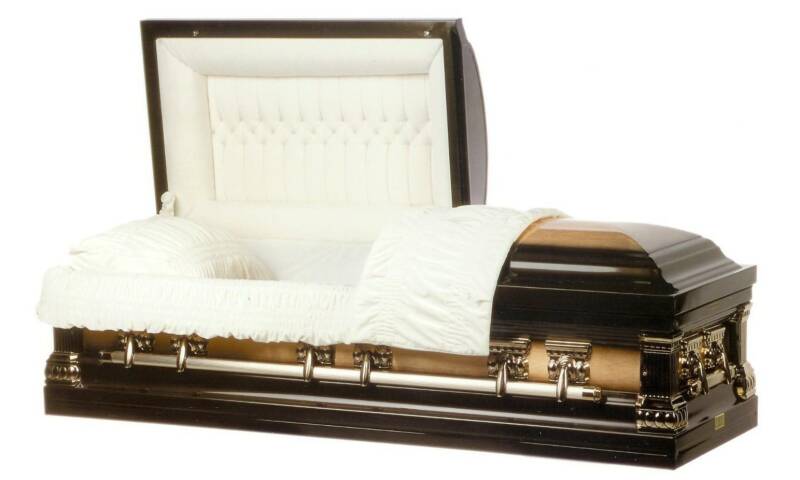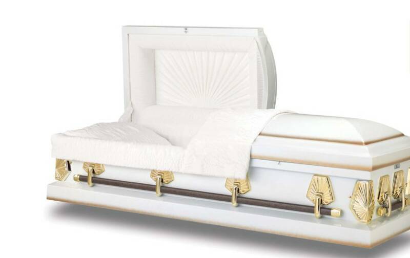 Package 4: $5,000.00 - Professional service, 20 gauge, non-protective casket : colors: bronze, blue, silver, and white; a register book and acknowledgement cards.
